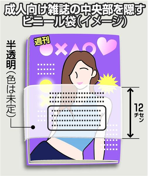 雑誌を覆うビニール袋の色は未定だが、縦12センチの半透明で、腹巻きのように雑誌の中央部分を覆い、表紙の写真などを見えにくくする。上部の雑誌名の部分と下部は覆わず見えるようにする。十数万枚の購入を予定している。