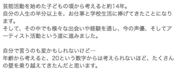 幼い頃から芸能活動をしていたため、普通の学生としての生活が送れなかったことや、普通という感覚を知らずに生きているんじゃないかという不安があったという。